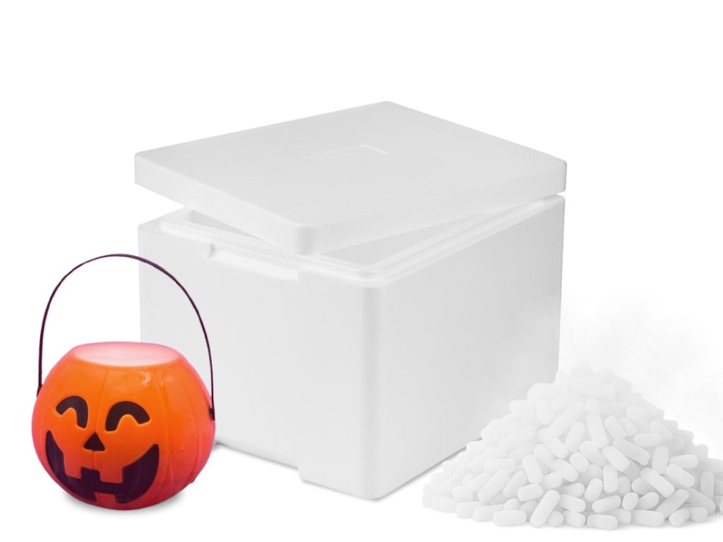 Halloweenský kotlík + 5 kg suchého ledu s termoboxem